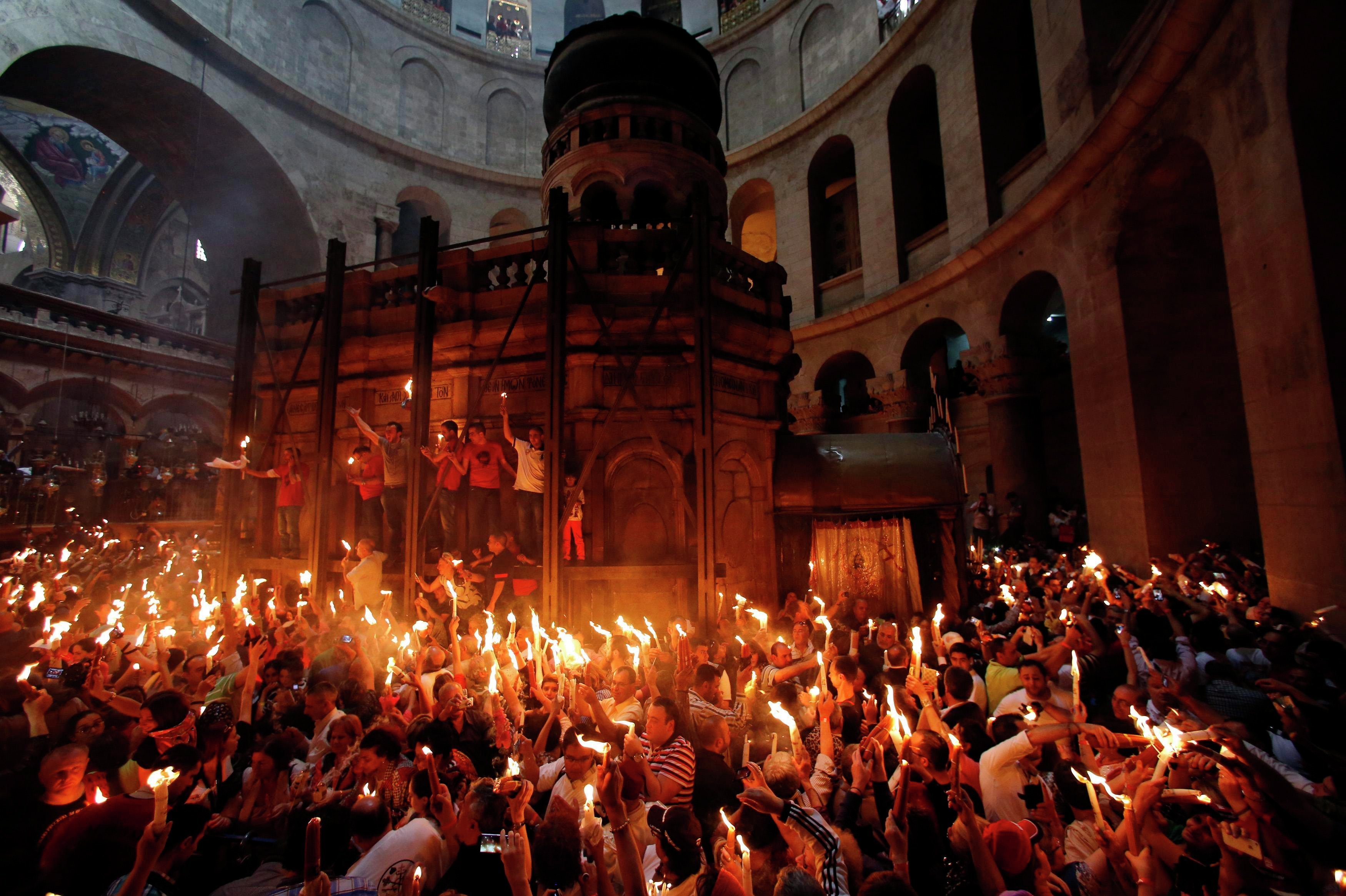 Запалення Благодатного вогню символізує свято воскресіння Ісуса Христа. Після цього вогонь доставлять в храми по усьому світу.